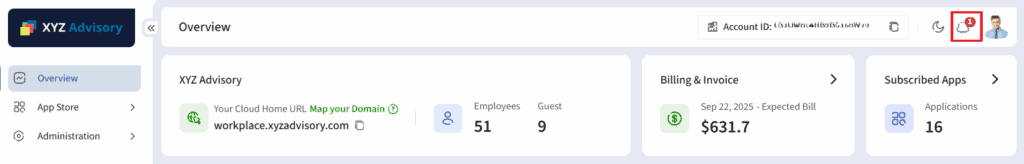 The Infince Cloud Console serves as the central hub for managing your workplace. The Overview page offers a snapshot of key information, enabling Administrators to monitor and manage the platform with ease.