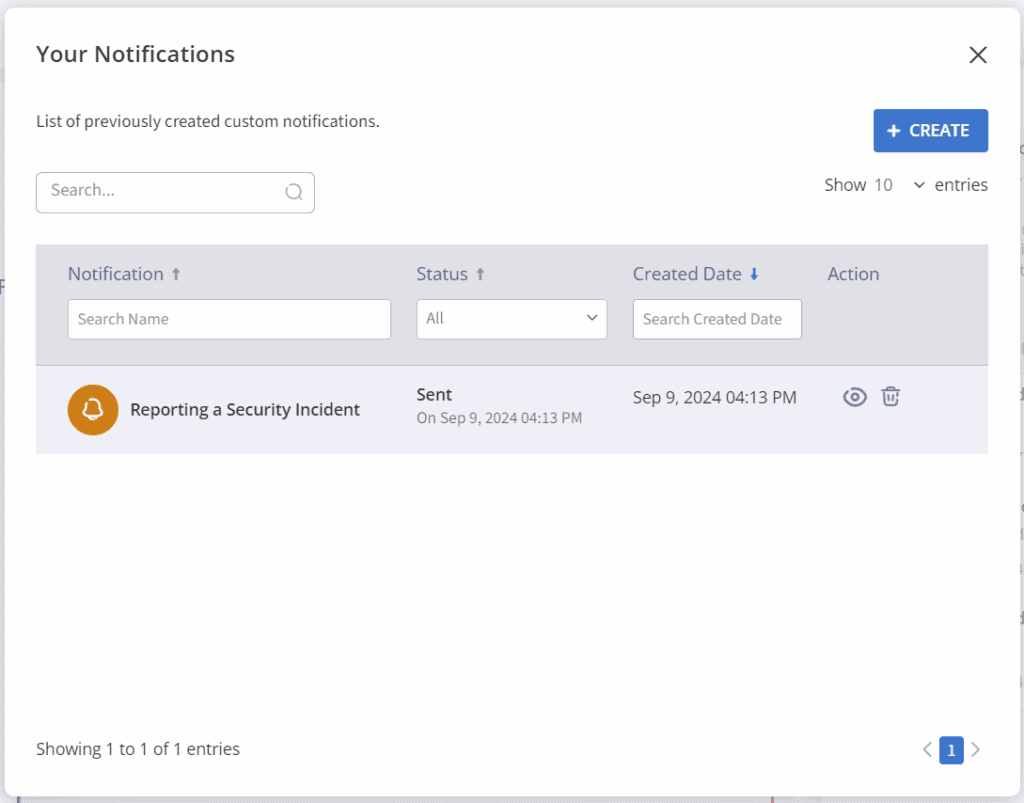 The ‘Your Notifications’ pop-up shows the notifications that have already been sent or are in pending status. You can view, edit, or delete the notifications.