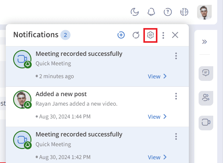Click on the ‘Gear’ icon on the Notification pop-up to configure the notification settings.