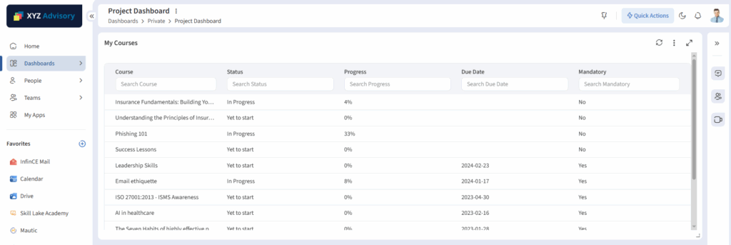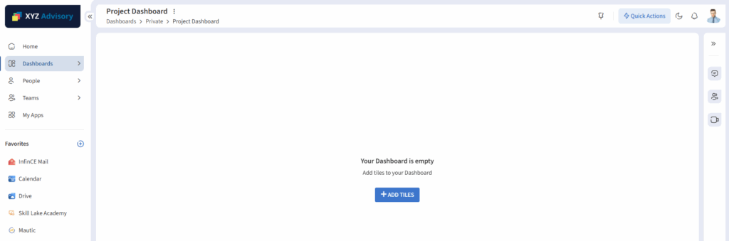 Tiles are the individual information snippets/cards that are the building blocks of the Dashboard. Users can often customize and arrange dashboard tiles based on their preferences, focusing on the most crucial information for their needs.