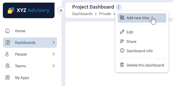 Click on the +Add Tiles button to add tiles to the created dashboard.