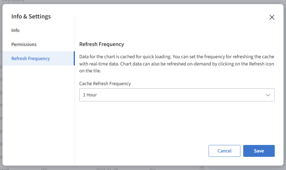 This option is available only for Custom Tiles and lets you set the frequency for refreshing the cache with real-time data.
