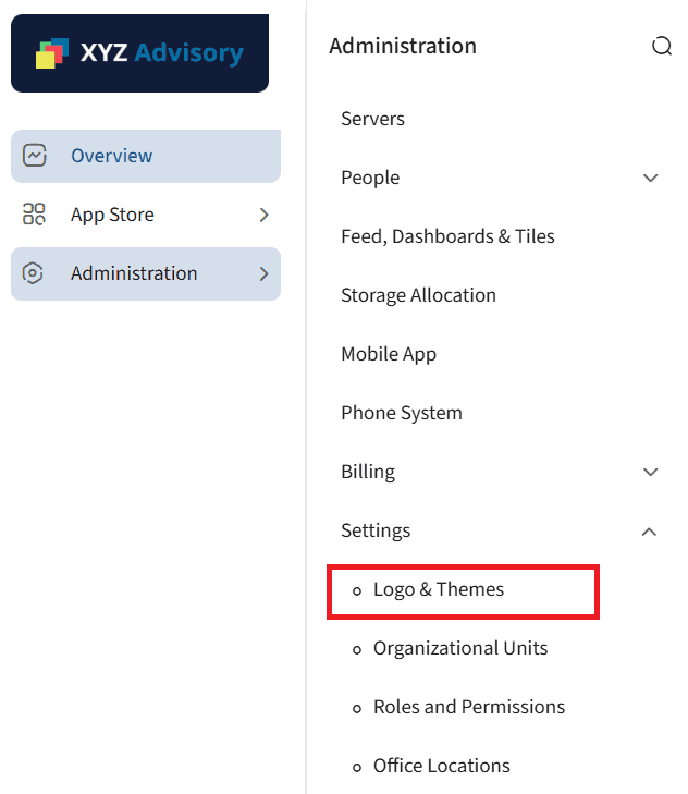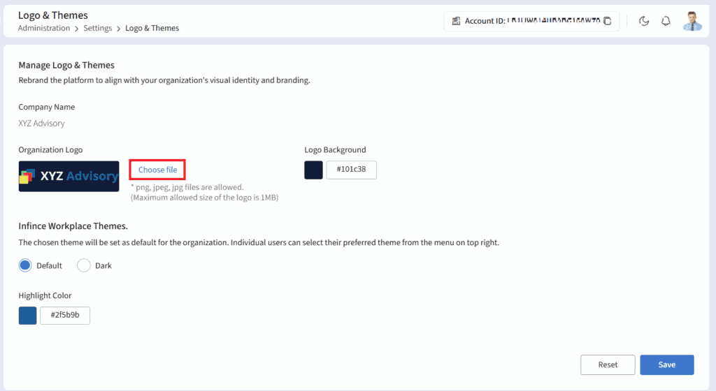 When you sign up for Infince, the application is launched with the default logo and theme. You can change these settings to white label your Enterprise Cloud as per the branding requirements of your organisation.