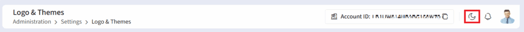Users can click on the Switch to Dark Theme icon on the top right side of the screen to change to dark theme, which will override the default theme set for their organization. The logo and highlight colour will be as per the organizational setting.