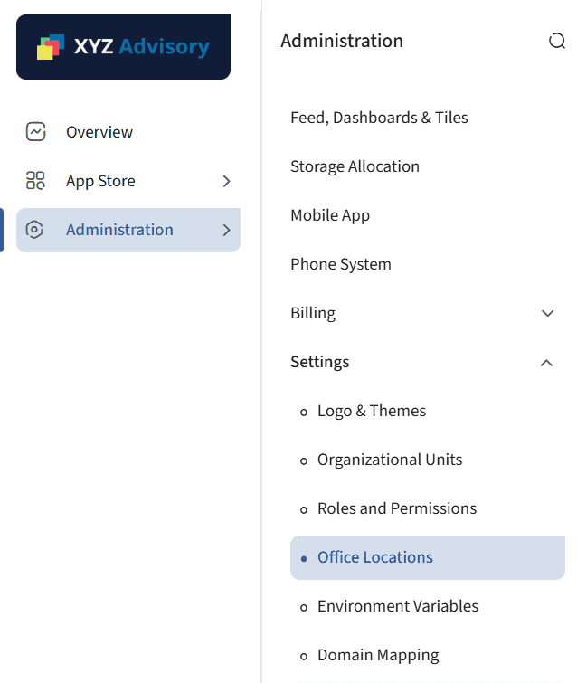 If your office functions in multiple locations, you can define these under the “Office Locations” menu within Administration > Settings > Office Locations.