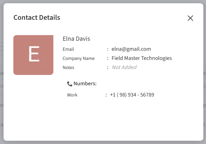 You can view the contact details in the ‘Contact Details’ pop-up.