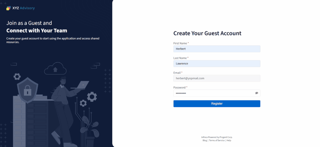 Here is a quick walk-through of how Guests invited to Infince can register, access and collaborate on Infince: