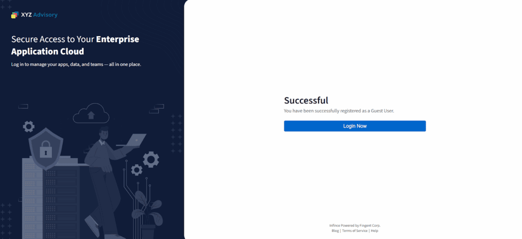 - After successful registration as a Guest User, you can click on the ‘Login Now’ button to log in as a Guest to Infince.