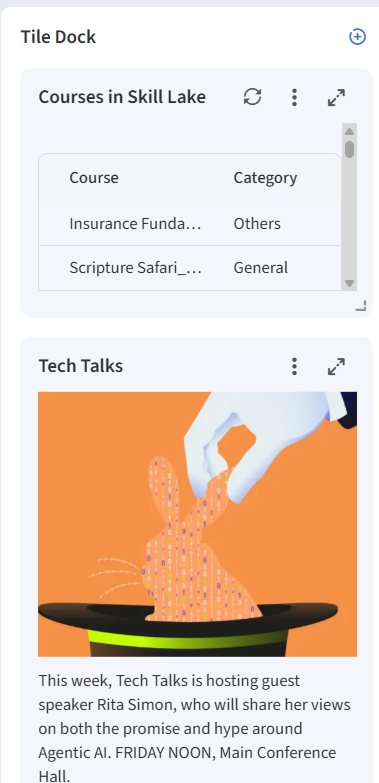 The Tile Dock section helps you add dashboard tiles for ease of use and increased productivity. The Administrators with organization Dashboard edit permissions may add and edit the tile dock tiles.