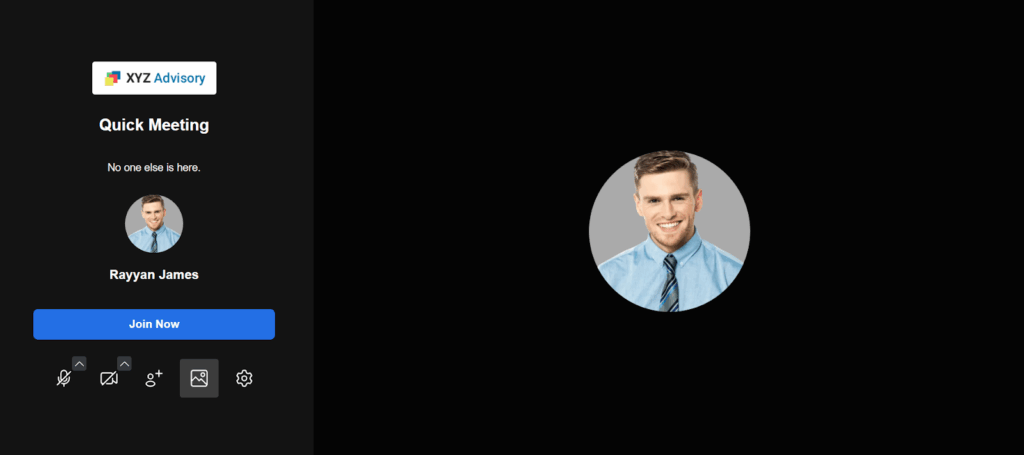 The login screen of the meeting is branded with your Company’s logo (set in Administration > Settings), making it a conducive forum to host your business discussions.