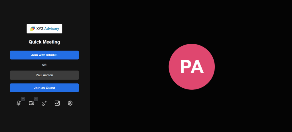 - Click on “Join with Infince” to join using your Infince credentials, or you may enter your display name and join as a guest.