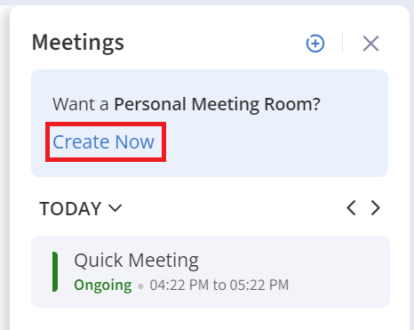 - Click on the Meetings panel and Create Now link to create a new meeting room.