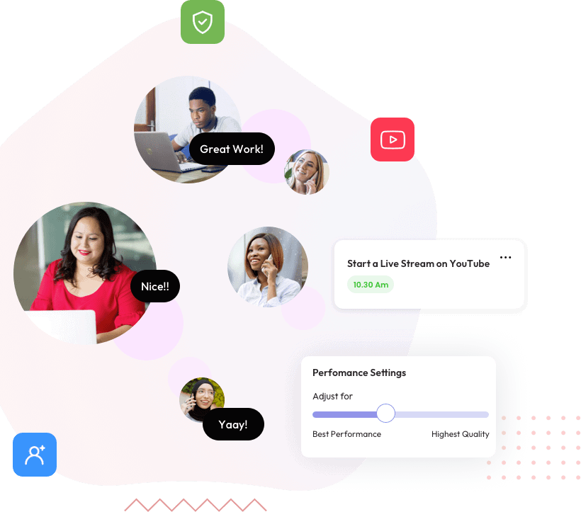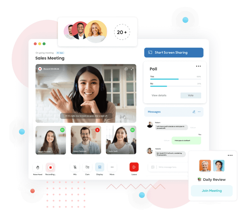 Make your virtual meetings highly interactive with multiple screen sharing, meeting recording, and live chats within meetings.
