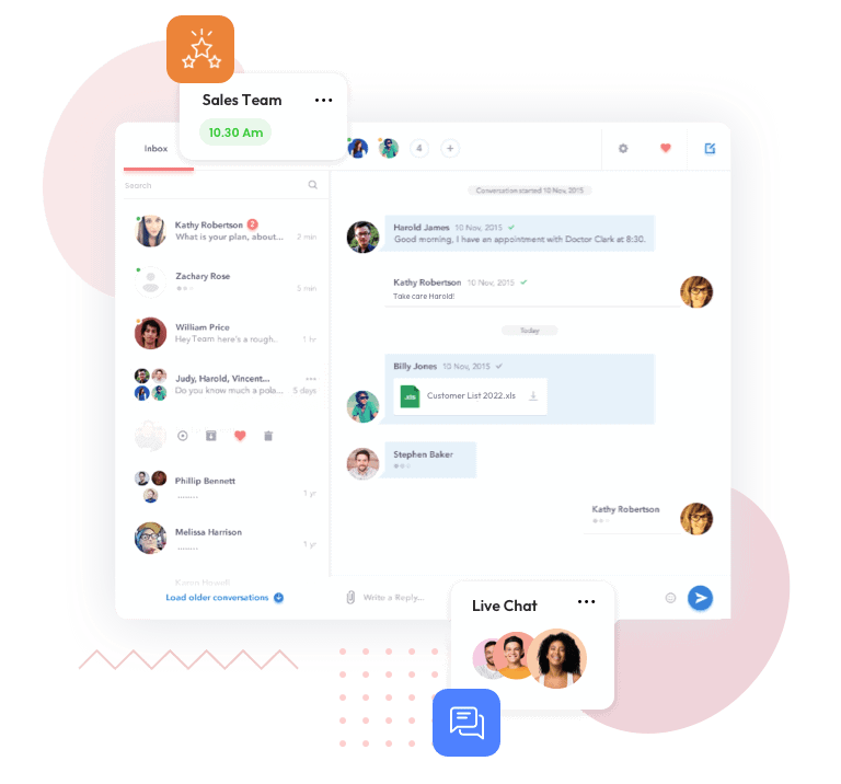 Instantly share messages, reactions, status reports, and files securely via Infince live chat and continue your workplace interactions.