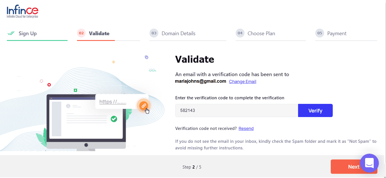 If you have already registered a domain for your business but have not set up the Email Server, you can opt for an Email Server and Infince Workplace during your Sign up. Please follow the steps below to complete your Sign up successfully.