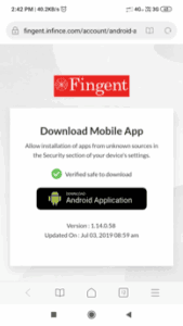 - Step 5: Once the installation is complete, you will be directed to the Infince login page where you can provide your credentials (same as web login) to sign-in to the App.